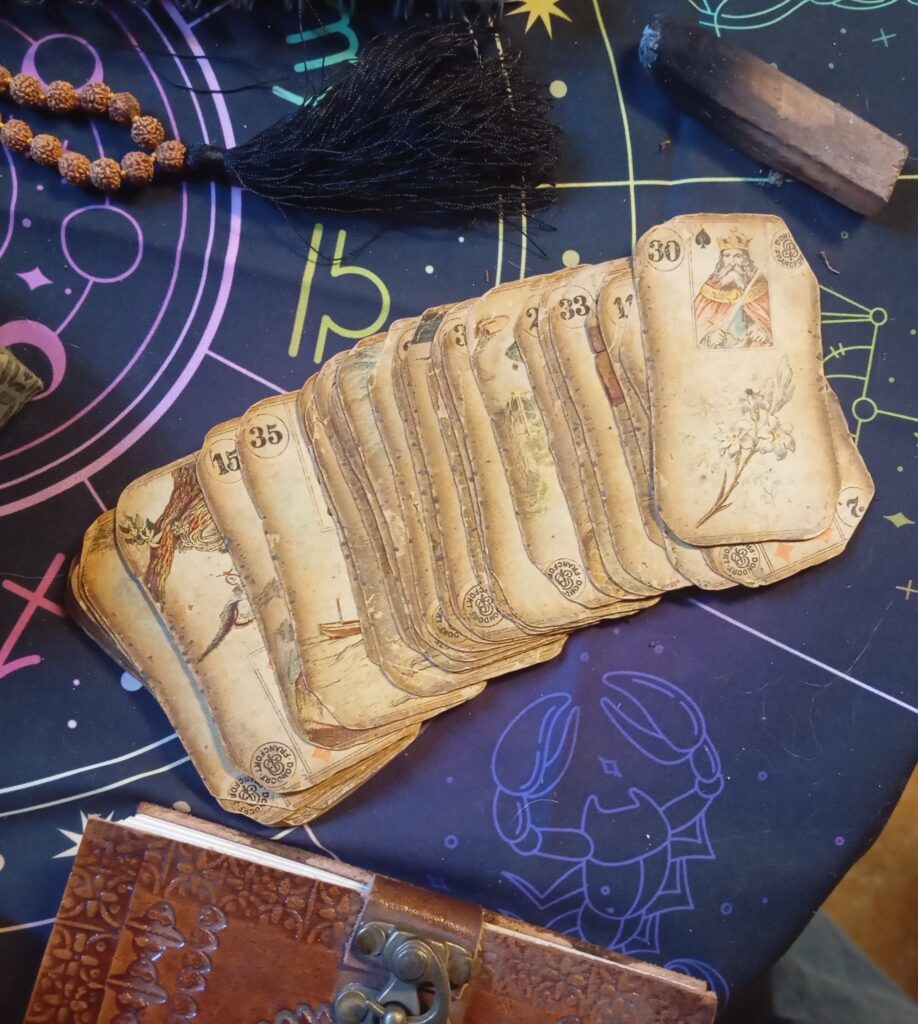 Une série de cartes oracle anciennes, transmises de génération en génération au sein de ma lignée.